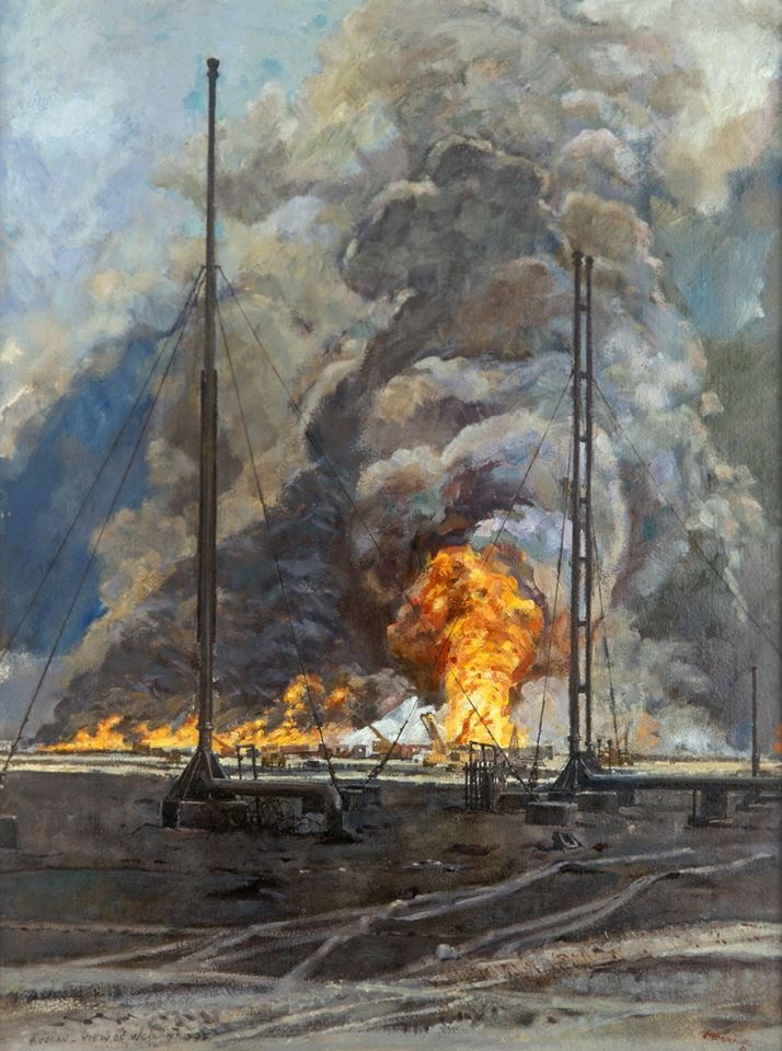 Although he did not succeed in being appointed as an official illustrator by the French Army, he nevertheless reached Kuwait during the final military operations. There, he painted the fires of Kuwaiti oil wells set ablaze by the Iraqi army, in temperatures exceeding fifty degrees Celsius and under a rain of hot hydrocarbons. On that occasion, he appeared in a double-page feature in Newlook France (January 1992) and was photographed by photojournalist Chip Hires.